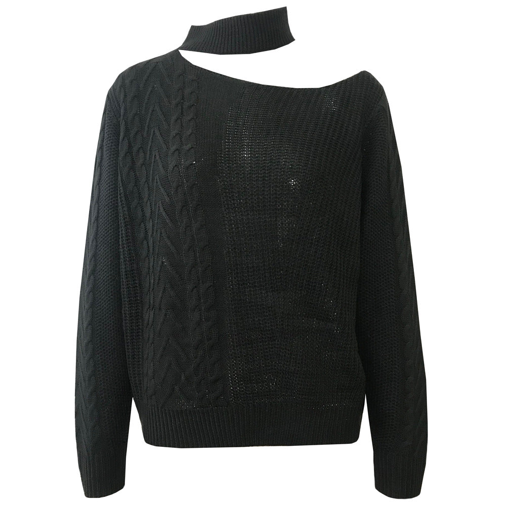 Off-the-shoulder irregular long-sleeved sweater