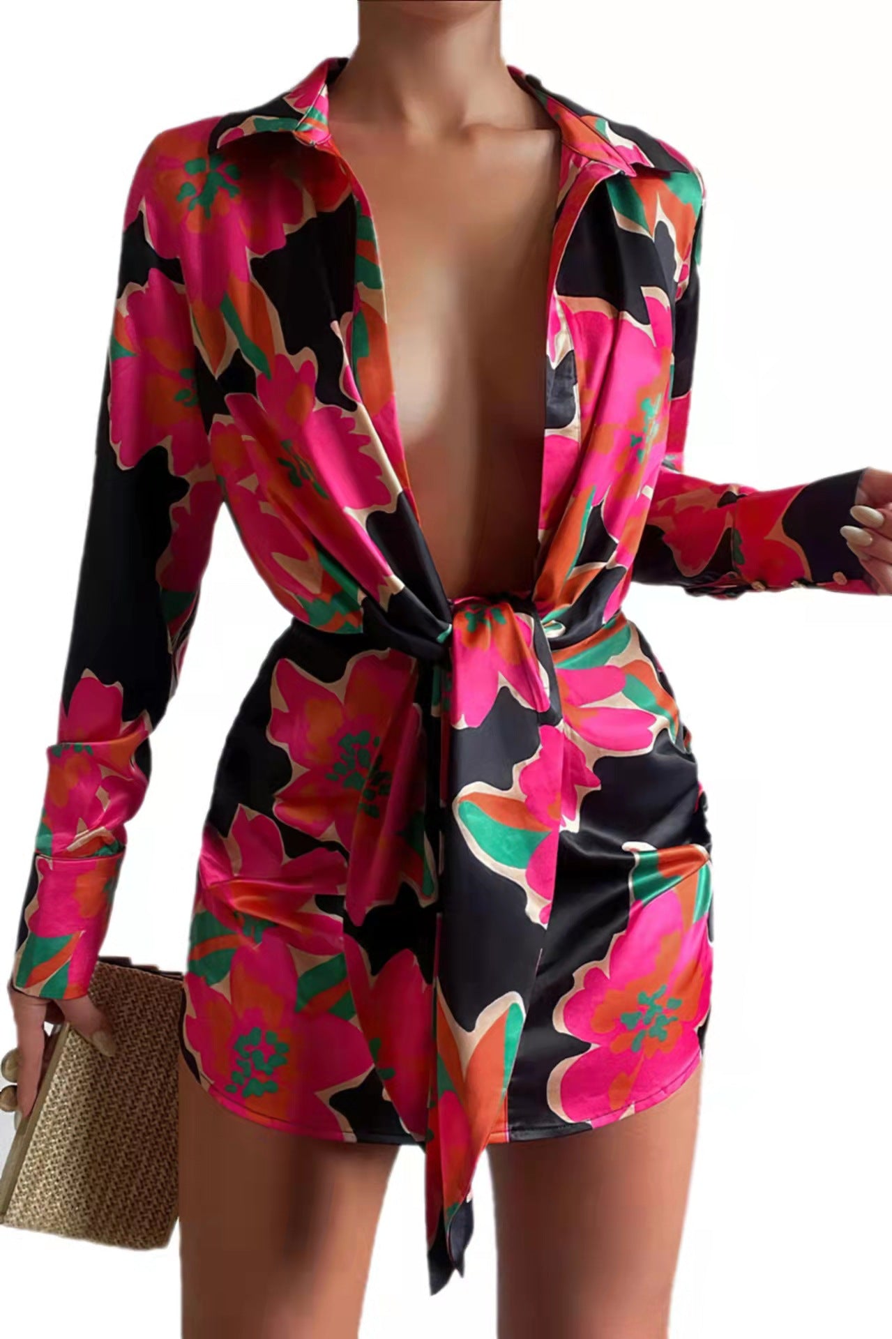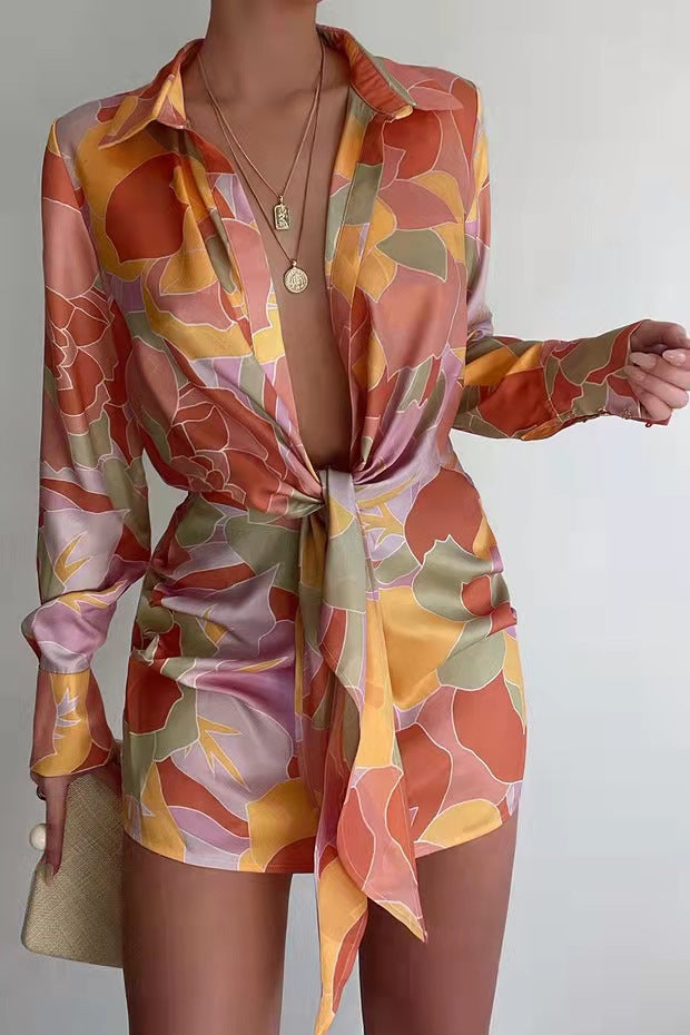 Women's Digital Print Button Down Long Sleeve Shirt Dress